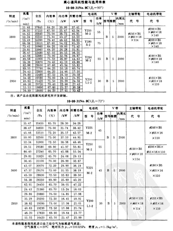 10-08-31型高压离心风机参数表